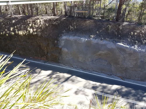 NSW Roads and Maritime Services (RMS) cleaned the landslip debris off the road, opening one lane of the highway, and, a team of engineers comprising Davies Geotechnical & Coffey Geotechnical investigated the stability of the mountain in several areas. Geotechnical drilling encountered construction fill over angular colluvium in stiff clayey-sandy Silt. Rock was highly fractured variably weathered low to high strength Meta siltstones, Meta sandstones and Quartzite. A number of voids/cavities were encountered. An irregular bouldery layer was encountered overlying the highly irregular bedrock surface. This layer was thought to be a potential conduit for ground water and conceivably a shear plane/weak zone for a landslip.